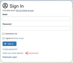 - An email will be sent to the address you entered with a verification link. Click the link to verify your email address. The email should arrive in a few minutes. If you don't see it, check your junk mail folder. If it's not in your junk mail, you can generate another email by clicking the link "Verify email address" on the sign-in screen. See image on the right.